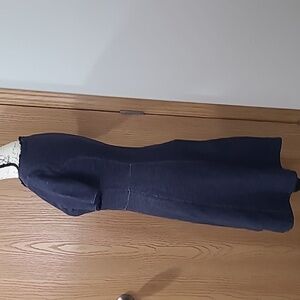 Elegant navy blue dress with short sleeves. Perfect for any occasion.