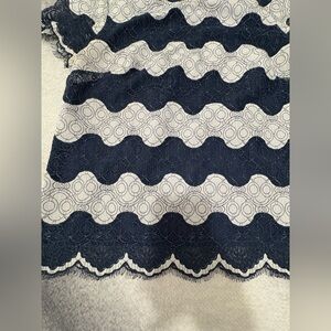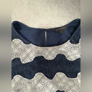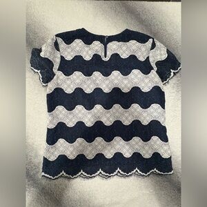 Banana Republic Navy Blue Gray Lace Striped Cute Top Blouse Medium M