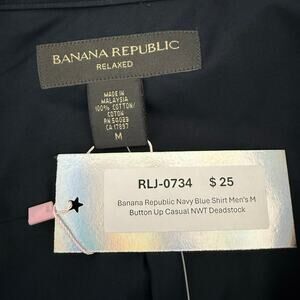 You're viewing a brand new with tags Banana Republic navy blue button-up shirt. This casual shirt is deadstock, ready to add a touch of timeless style to your wardrobe. Don't miss out on this classic piece!
