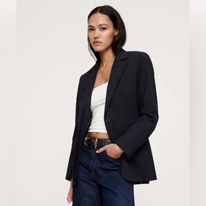 Brand new with tags! Realized I ordered the wrong size after trying on once at home. Beautiful navy wool blazer. Some photos used from website to demonstrate fit show black fabric, but please note this is the navy color in the first image.