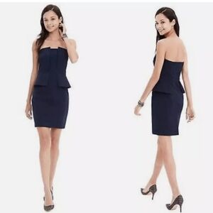 Banana Republic Navy Blue Textured Strapless Peplum Dress Sz 8 Blue Minimalist