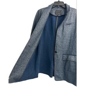 Banana Republic Navy Blue Tweed Blazer Jacket Women’s Sz 10 Pockets Cotton Blend