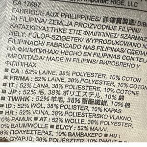 Fabric: 82% Laine, 38% Polyester, 10% Cotton