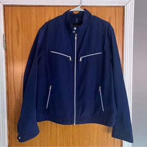 Banana Republic Navy Blue Windbreaker Jacket Coat Silver Hardware XL Preppy