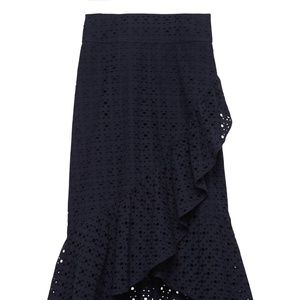 Banana Republic Navy Blue eyelet ruffle midi skirt