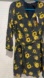 Elegant navy dress with bold yellow flowers. Features a V-neck and polka dot pattern.