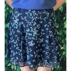 A versatile favorite, this Banana Republic skirt features a navy chiffon overlay with a soft floral print and a flattering A-line cut. Fully lined with a zip closure for comfort and ease. Hits around the knee and works effortlessly for both office and off-duty looks. Machine washable.