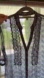 Chic dark blue Banana Republic blouse with delicate floral pattern. Features a stylish V-neck, ruffles, covered buttons, and short sleeves. Polyester.