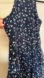Chic navy midi dress with floral design and ruffled bottom. I would say this would be considered a modest "high-low" dress (a bit shorter in the front). Features a layered skirt and thin straps. Ideal for versatile styling. Side zip closure with button neck closure
