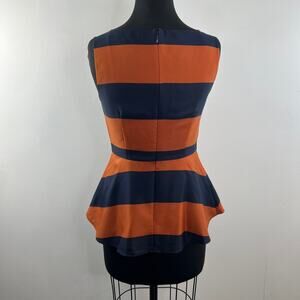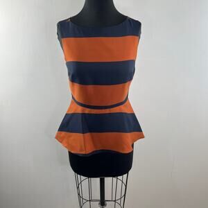 Banana Republic Navy Orange Peplum Top Rugby Striped Boat Neck Sleeveless Size 4