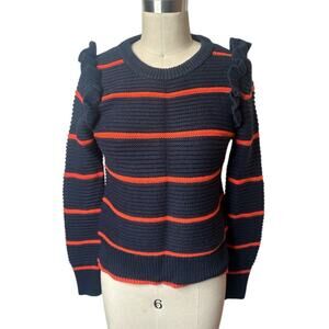 Banana Republic Navy Orange Stripe Ruffle Shoulder Long Sleeve Sweater Women's S