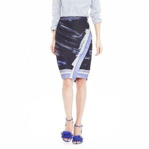 Banana Republic Navy Pencil Faux Wrap Brush Painting Print Skirt Sz 6