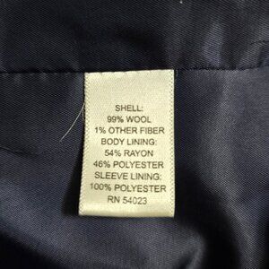 Material: 98% Wool 1% Other Fiber (Shell) - 54% Rayon 46% Polyester (Lining)