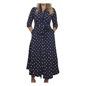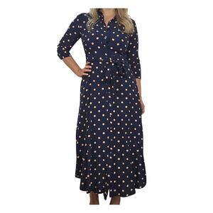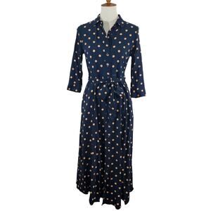 Step out in style with this Banana Republic navy polka dot midi dress. This dress is in excellent condition and features a flattering belted waist and convenient pockets. Perfect for any occasion!