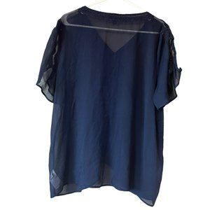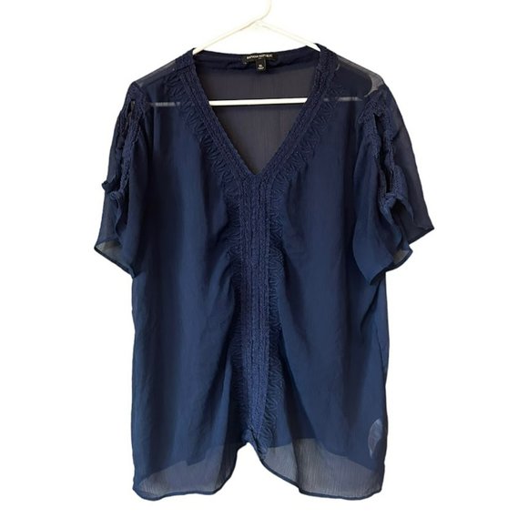 Banana Republic Navy Sheer Embroidered Blouse Womens XL