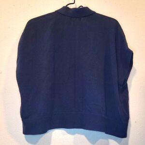 This Banana Republic oversized sweater in navy features a stylish Johnny collar, offering a relaxed fit for XS to S sizes.