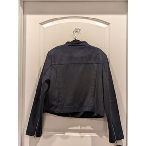 Banana Republic Navy Vegan Suede Biker Jacket with Gold Accent Zippers Large