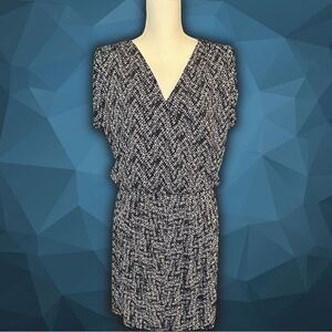 Banana Republic Navy & White Geometric Crossover Pleated Mini Dress Size Medium
