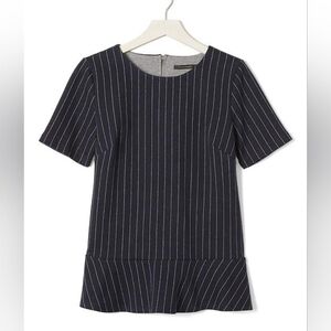 Banana Republic Navy White Striped Peplum Cotton Top Blouse