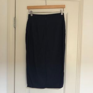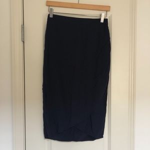Good condition. High waisted sleek pencil skirt with wrap-effect front. Tailored fit through waist, hip and thigh. Hits at the knee. 13" waist and 28 length. 100% viscose.