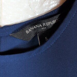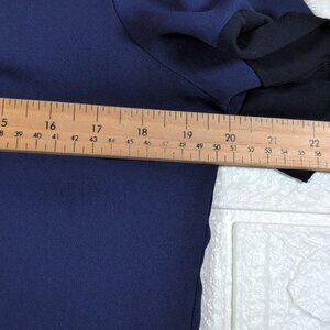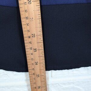 Chic navy blouse with black trim. Short sleeves. Ideal for versatile styling.