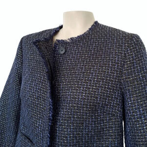 Banana Republic Navy and Gold Metallic Crop Fringed Jacket Blazer Holidays