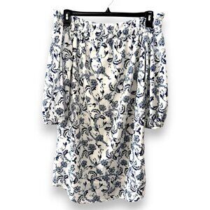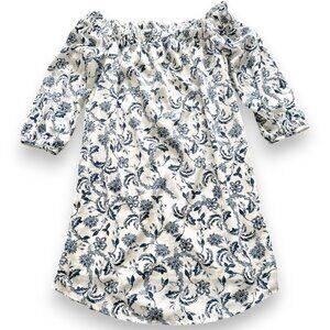 Elegant off shoulder dress with navy floral design. Barely worn. In a good condition.