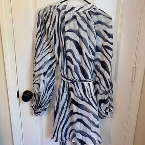 Elegant dress with a striking deep navy blue and white zebra like pattern. Sheer print over white slip - slip is detached, two-piece and is fairly sheer as well.