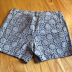 Stylish shorts with a unique pattern. Features navy and white colors. Perfect for casual outings.
