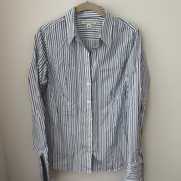 Classic striped design. Navy and white colors. Perfect for casual outings.