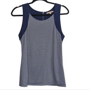 Elevate your wardrobe with this chic navy and white striped sleeveless top. Perfect for casual outings or layering, this top offers both style and comfort.
