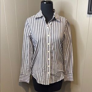 Banana Republic Navy and White Striped Women's Small Button Down Shirt