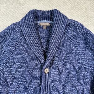 Banana Republic Navy Blue Cable Knit Italian Yarn Men's Smoking Boating Cardigan Sweater L