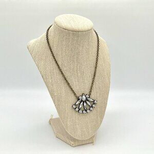 Elegant Banana Republic necklace featuring a fan-shaped pendant with sparkling clear rhinestones on an antiqued brass-tone chain.