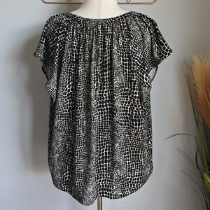 Banana Republic, New Animal Leopard Print Pleated Jersey Blouse Shirt Size XL
