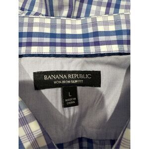 Banana Republic No Iron Slim Fit Blue and Purple Plaid Button Down Size Large