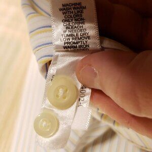 Banana Republic Non Iron Slim Fit men’s yellow striped dress shirt medium 15-15 ½, Good condition. Measurements are: 25 ½" sleeve, 29” from shoulder to hem, and 22” from armpit to armpit.