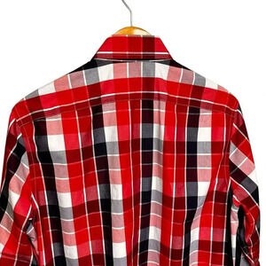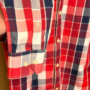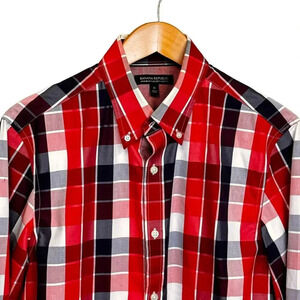 Men's Banana Republic Red White Blue Plaid Long Sleeve Button Down Shirt 100% Cotton MSRP: $65