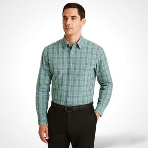 No need to iron, this soft, 100% cotton dress shirt is specially engineered to resist wrinkles so it stays looking crisp and pulled-together. Made to move with you, the fabric has a natural stretch due to the unique construction of its yarn.