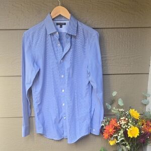 Banana Republic Non-iron Tailored Slim Fit Micro Denim Blue Dress Shirt Small S