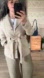 The Norfolk Linen-Cotton Jacket from Banana Republic is constructed in 55% Linen, 45% Cotton cream herringbone fabric, 100% Viscose body lining and 55% Polyester, 45% Viscose stripe sleeve fabric. It features a slightly oversized notch collar, V neckline, 4 button front closure, covered princess seaming, front patch pockets, thick belt loops with tie belt and a tailored long line silhouette. This is preppy, tailored, classic, timeless, coastal, office, old money, utility, english countryside, menswear inspired, euro chic, work meetings/ events, capsule wardrobe, neutral, quiet luxury, minimalist, suiting vibes.