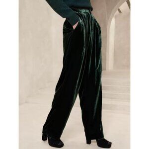 Banana Republic Norte Velvet Pleated Pants in Dark Juniper Green Size 10