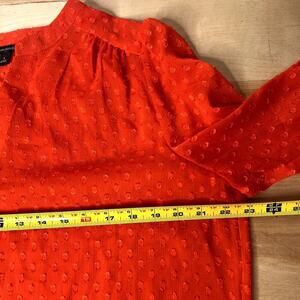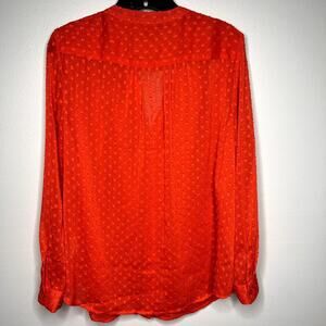 Banana Republic ORANGE Sheer Swiss Dot Long Sleeve Blouse Top Shirt Size Large
