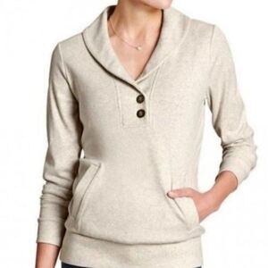Banana Republic Oatmeal Shawl Collar Button Neckline Long Sleeve Sweatshirt