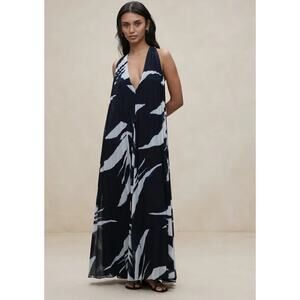 Banana Republic Odetta Pleated Maxi Dress Floral V-Neck Criss-Cross Open Back