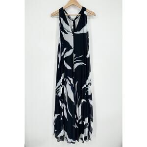 Banana Republic Odetta Accordion Pleated Maxi Dress Floral Sleeveless Open Back