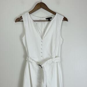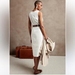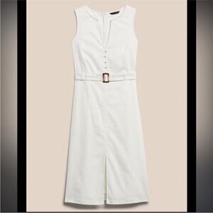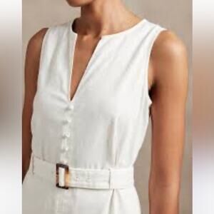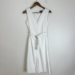 Banana Republic Off White Linen Cotton Belted Sleeveless Midi Dress Size 4