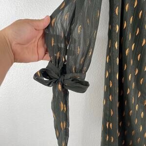 Banana Republic Olive Green Gold lined Short Dress Sheer Sleeves size 2 Evening