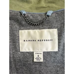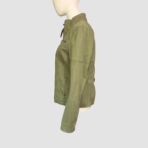 Banana Republic jacket, olive moto jacket, women’s size 8 jacket, cotton stretch jacket, green utility jacket, Banana Republic outerwear, casual chic jacket, spring fall layering, zip front jacket