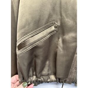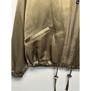 Banana Republic Olive Satin Bomber Jacket Zip Front Drawstring Hem Size M